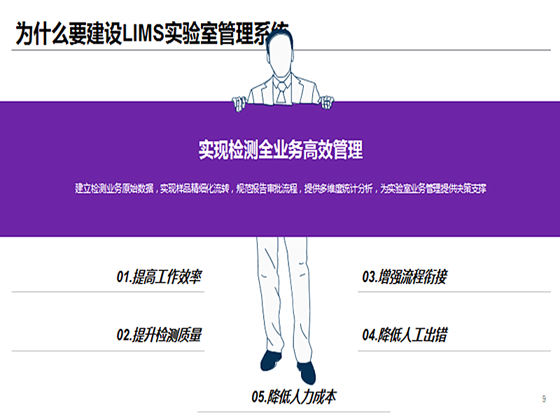 3、可实现无纸化办公,提高工作效率相关原始记录可以直接获取,减少重复记录,数据输入和计算过程加快;检验业务和各类记录格式直接在系统内输入,做到无纸化办公;可实现部分仪器数据的采集,检测数据的自动计算和验证;审核批准可在系统内完成,减少中间签字环节,提高工作效率;大量数据在系统中可进行统计分析生成图表和报告,大大减少人员工作量。