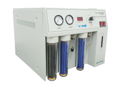 2、 当氢空一体机空气部份压力达不到设定值时,空压机频繁启动时,氢空一体机可能存在漏气。处理方式:关闭电源,卸下气路,将出口用密封螺帽封紧,开启电源,当压力上升,空压机停止工作后观察空压机是否会在30分钟内再次启动,如果空压机未在短时间内启动,说明仪器本身不存在漏气,请检查气体输出口以后的管路,及用气设备是否漏气。如果空压机仍然启动频繁,请用皂液检查干燥管是否存在漏气现象。如未检出干燥管漏气,请与本公司取得联系,以获得技术支持。